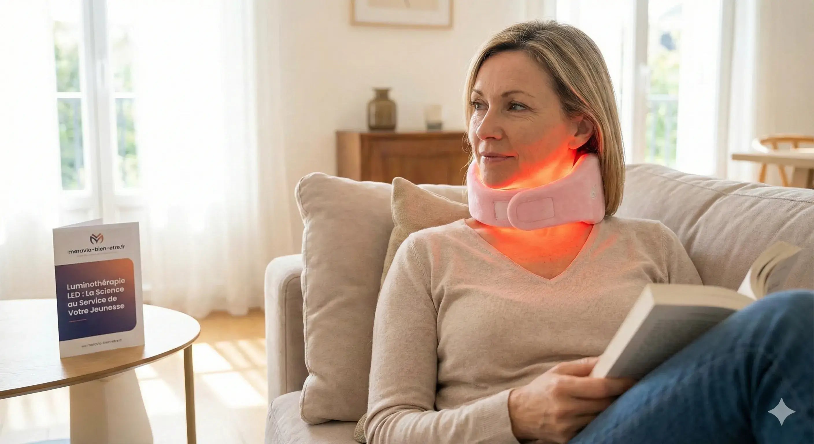 Chez meravia-bien-etre.fr, nous sommes fiers de mettre en avant une technologie douce, plébiscitée par les professionnels et désormais accessible chez vous : la Luminothérapie LED. C'est le moyen le plus simple, sûr et efficace de stimuler vos mécanismes naturels d'anti-âge.